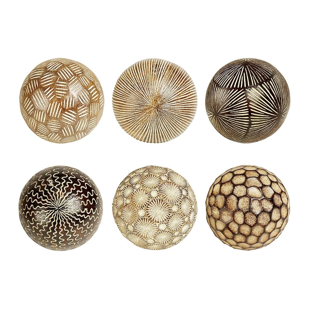Ajoutez une touche d'exotisme à votre intérieur avec cet ensemble de six boules déco en résine d'inspiration ethnique, aux teintes brunes chaleureuses.