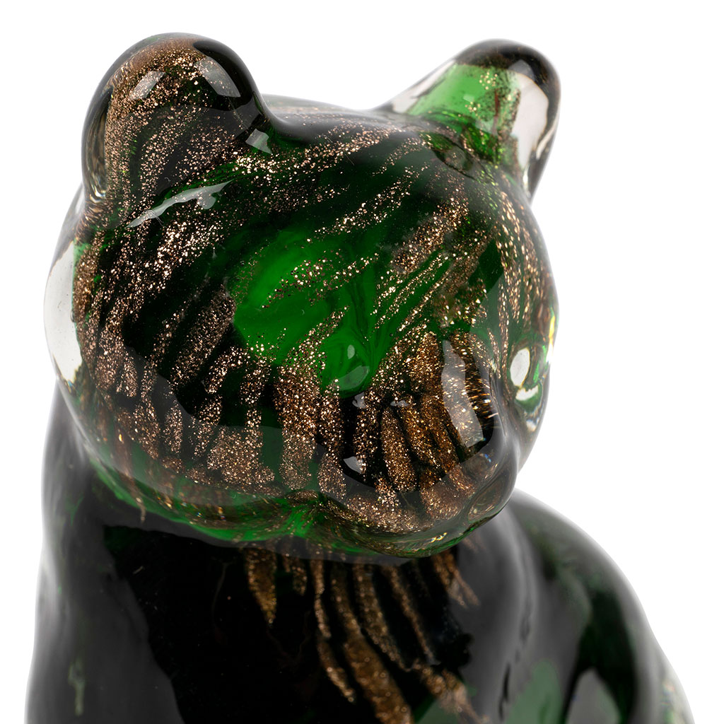 Découvrez notre magnifique déco chat en verre vert et doré - Félin !