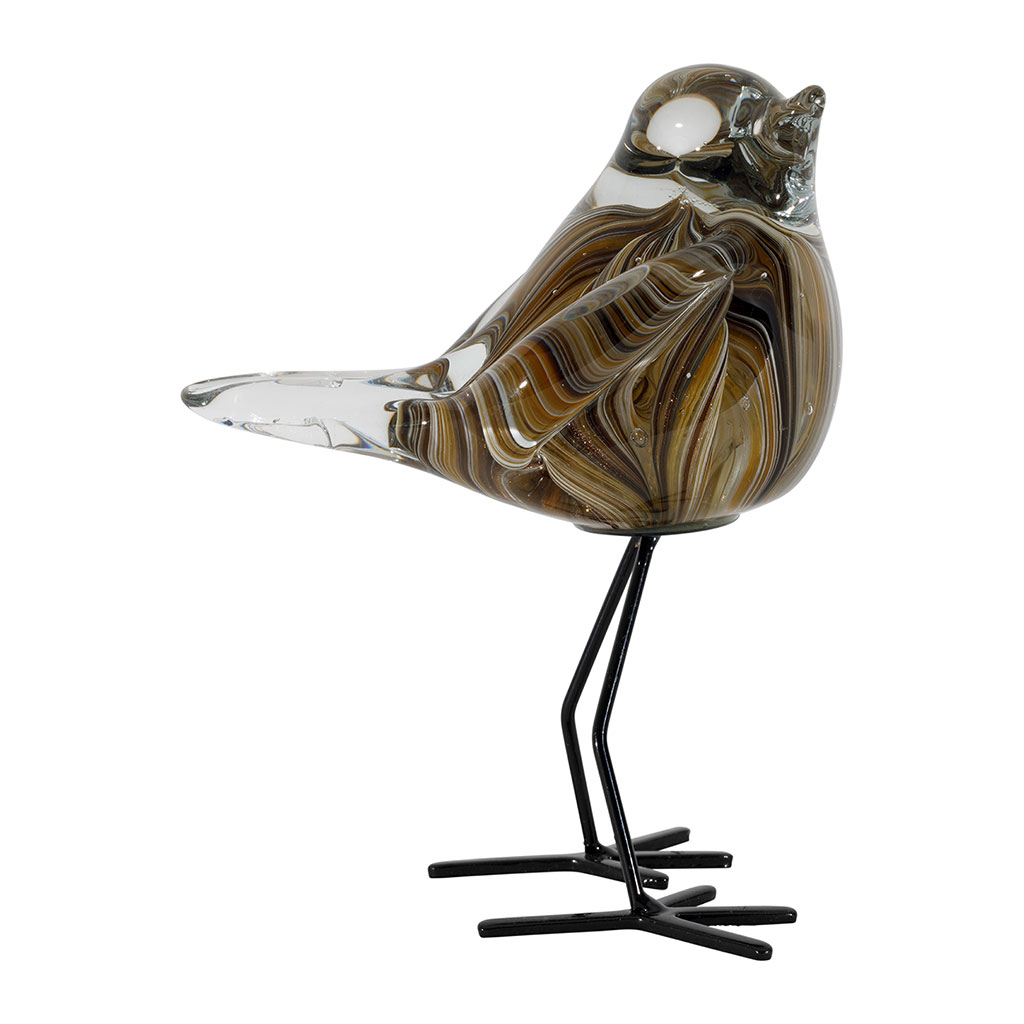05 56 69 68 67-contact@fabriquedestyles.frDéco moineau en verre ambre et brun - Serin