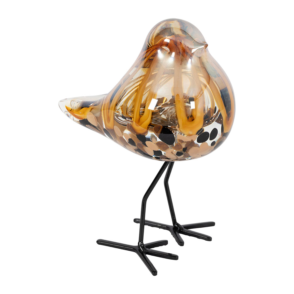 Laissez-vous séduire par les caractéristiques uniques de notre décoration moineau en verre et fer brun - Serin.