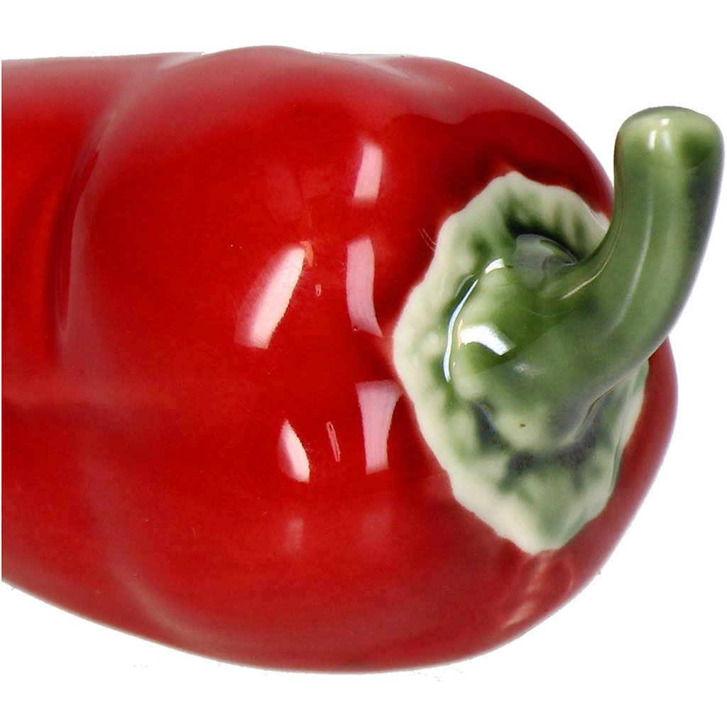 Ajoutez une touche de piquant et de vivacité à votre intérieur avec cette surprenante décoration en porcelaine rouge en forme de piment.