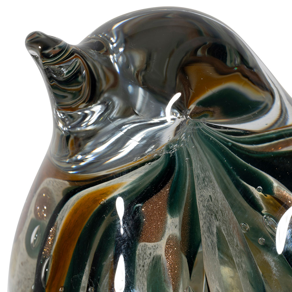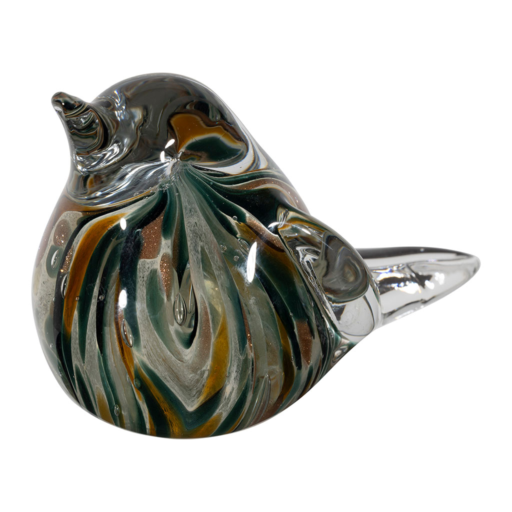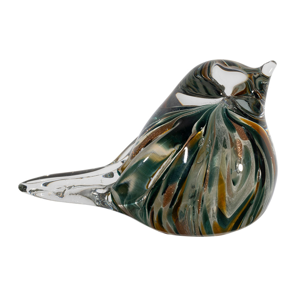 05 56 69 68 67-contact@fabriquedestyles.frPresse papier moineau en verre émeraude et doré - Serin