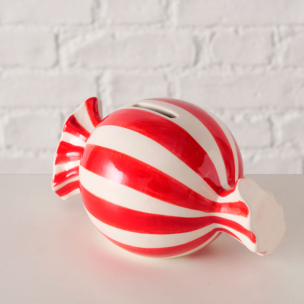 05 56 69 68 67-contact@fabriquedestyles.frTirelire bonbon en grès rayé rouge et blanc h10cm