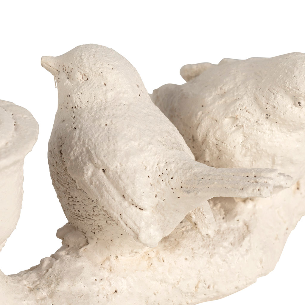 Fabriqué en résine écru, ce support à bougies illustre un moineau délicat, apportant une touche de nature et de chaleur à votre intérieur.