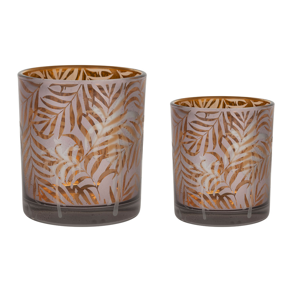 Ajoutez une touche chaleureuse et accueillante à votre intérieur avec ce duo de photophores en verre de couleur ambre et argent.