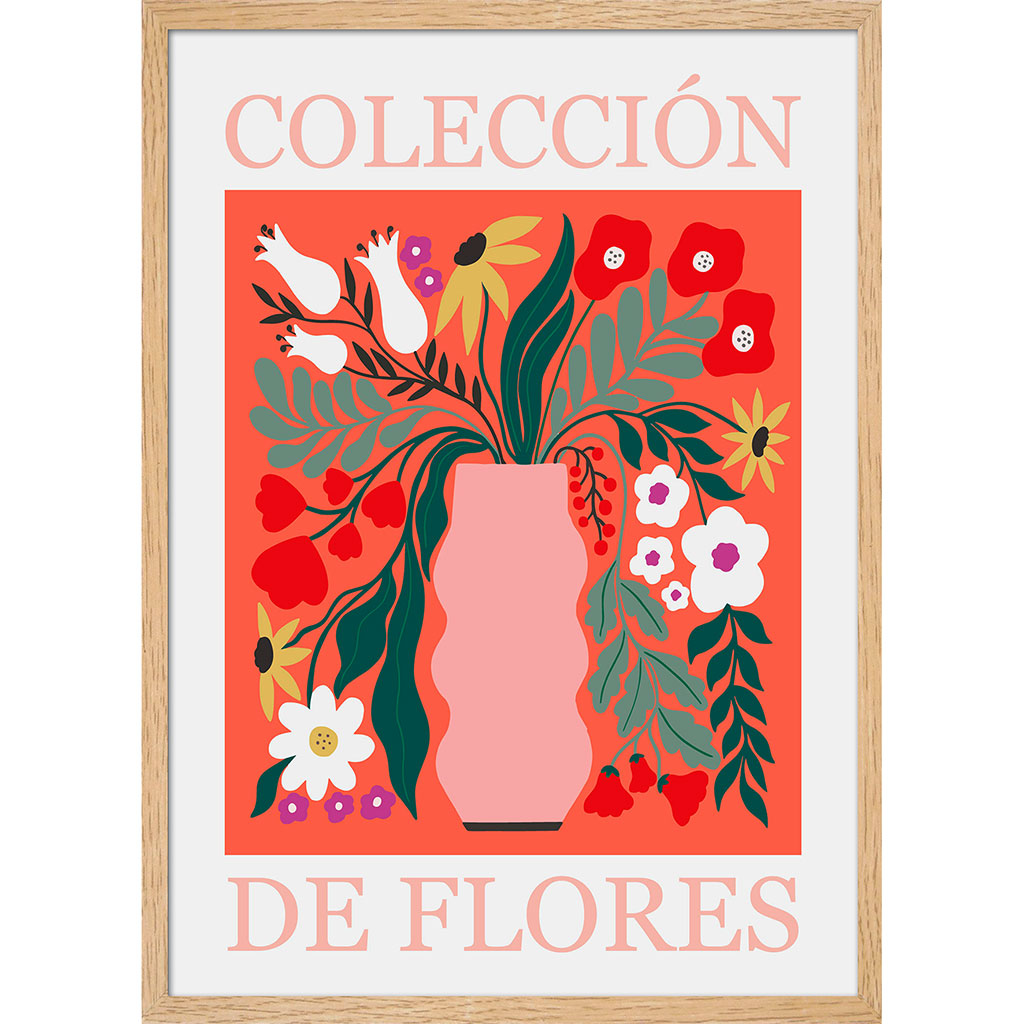 Visuel "BOGOTA COLECCION", format 50x70 cm, signé Emilie PILS, imprimée en haute définition sur papier texturé aspect lin 300 g, contrecollée sur un support en MDF et encadrée d'une moulure chêne clair en MDF e .