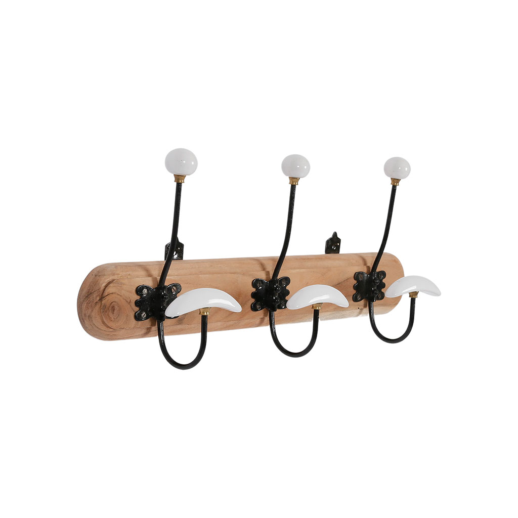 05 56 69 68 67-contact@fabriquedestyles.frPatère 3 crochets en acacia et fer naturel et blanc - Campagne
