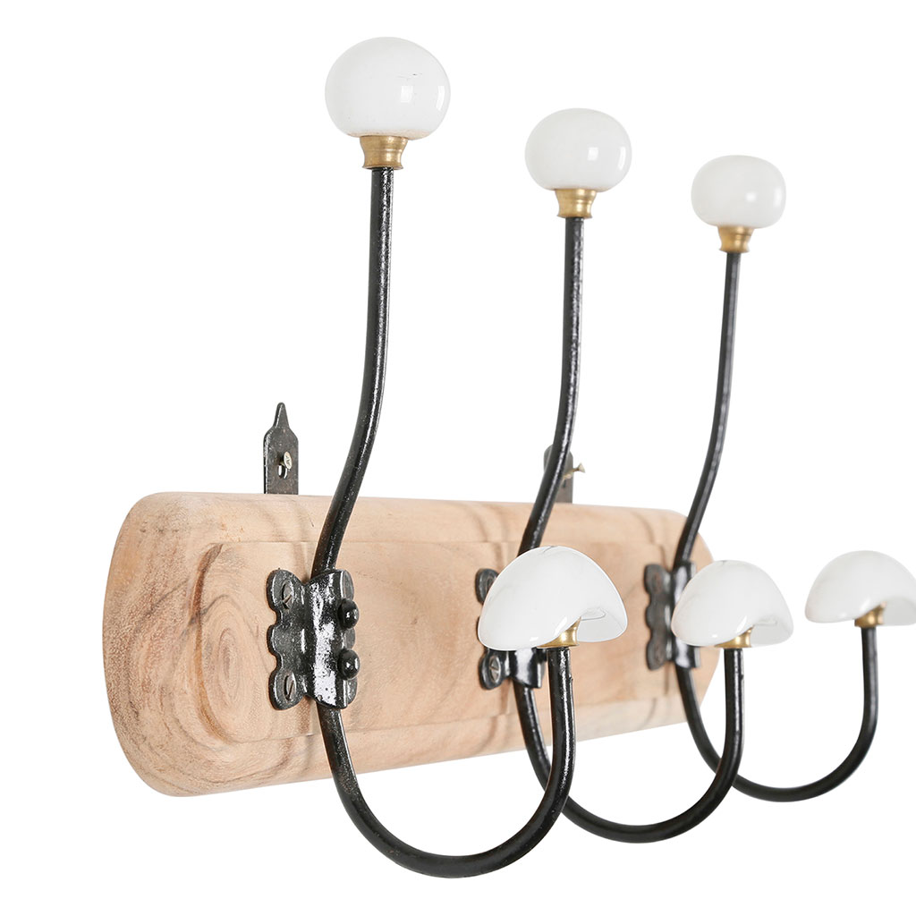 Découvrez notre patère 3 crochets en acacia et fer naturel et blanc de dimensions 48x23cm - Campagne, un choix idéal pour compléter votre décoration intérieure.