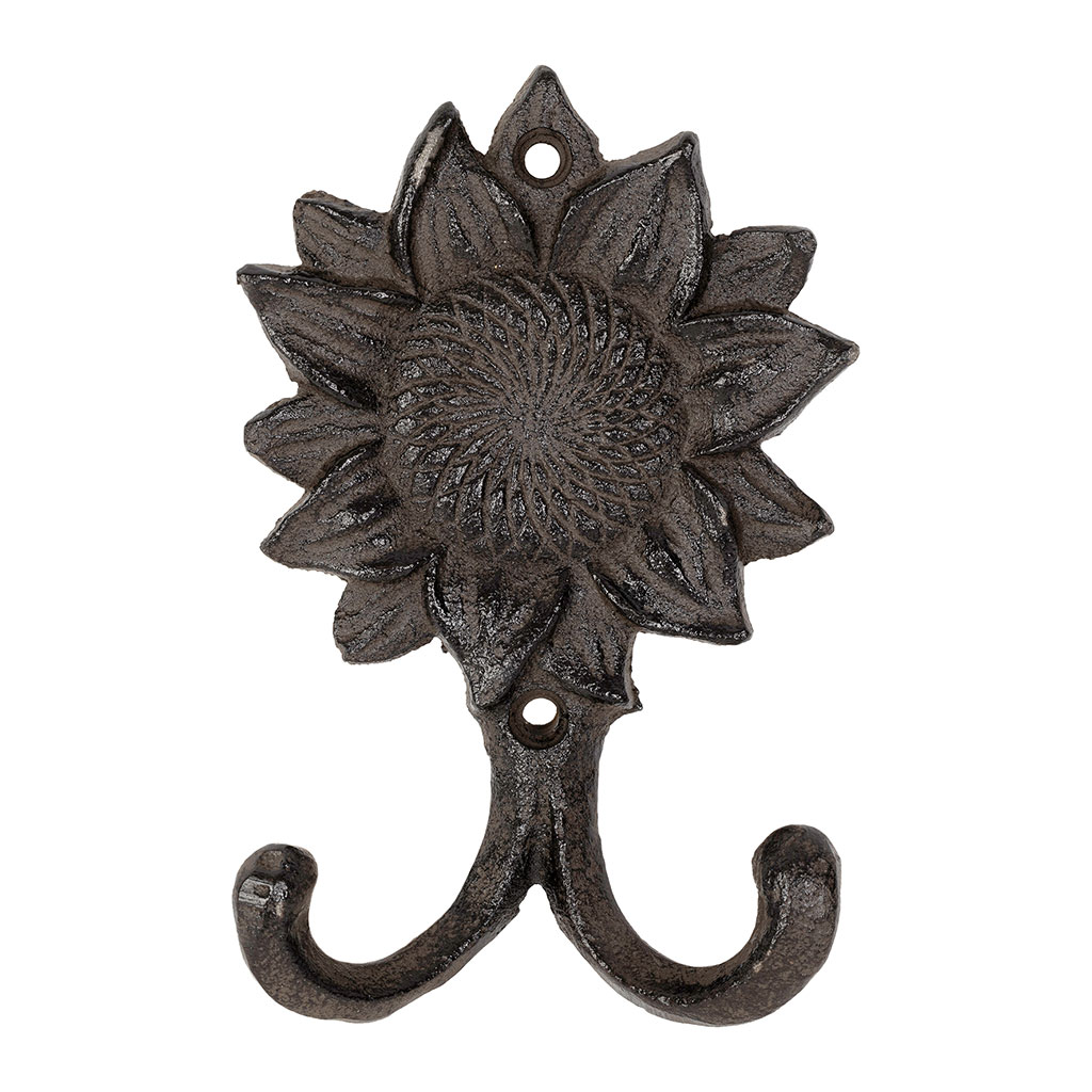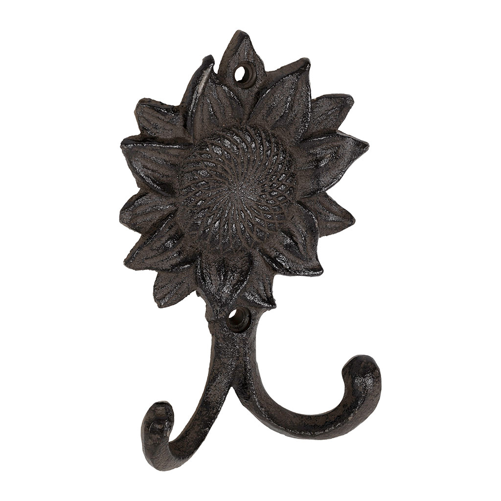 Ajoutez une touche de charme rustique à votre intérieur avec cette patère double tournesol en fonte brun.