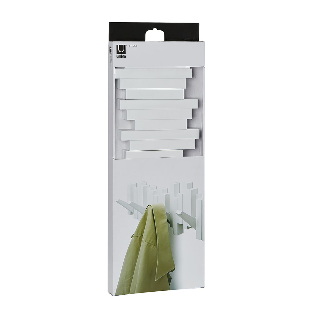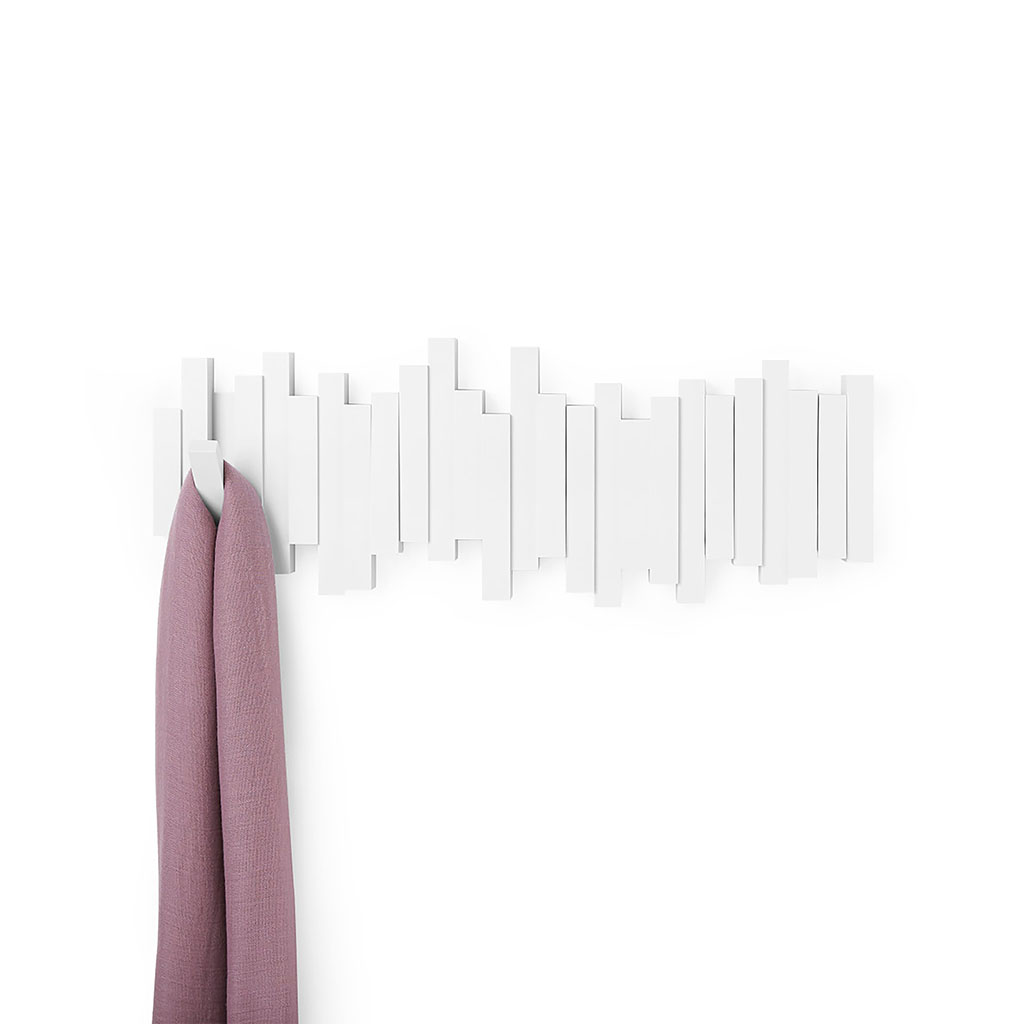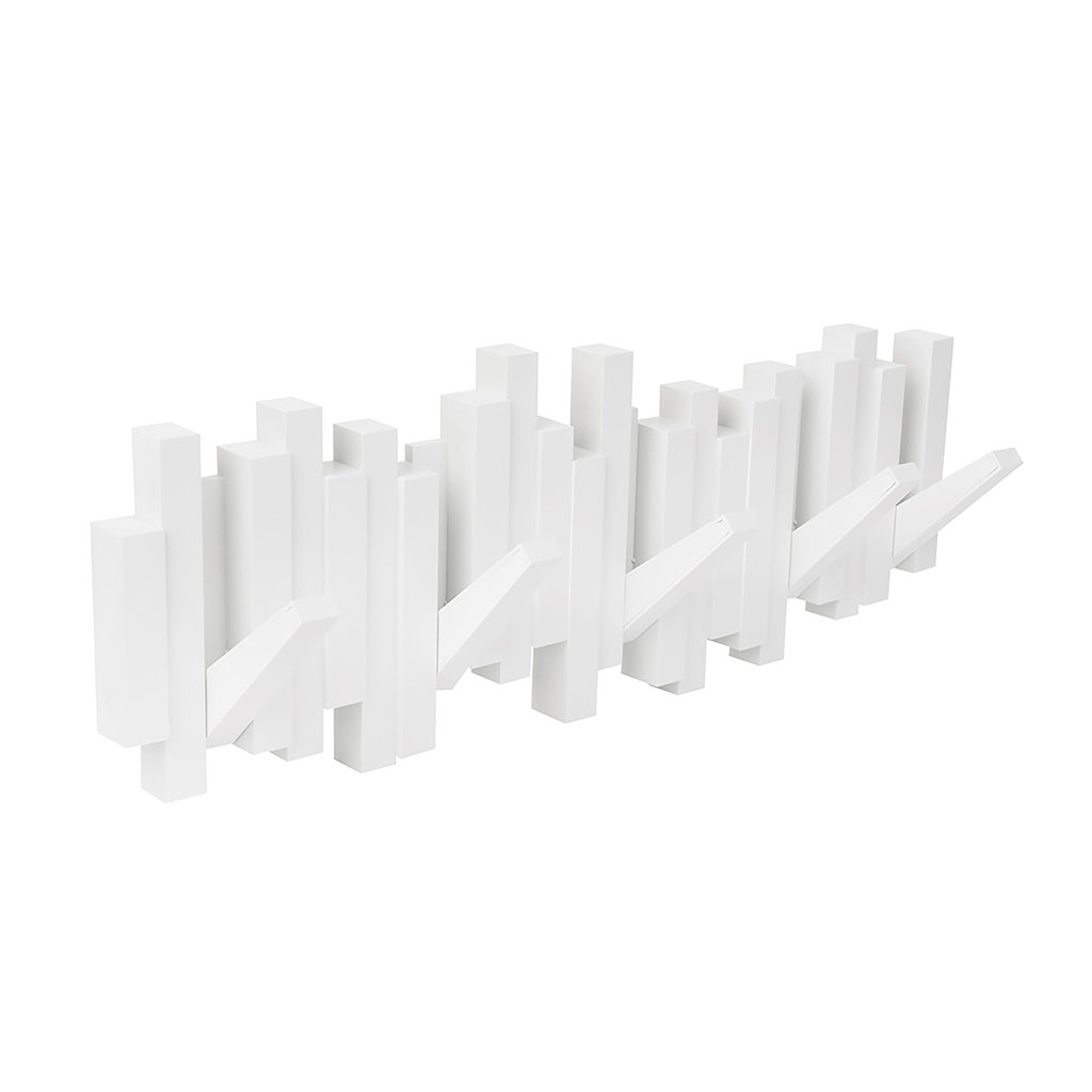 La patère murale blanche avec 5 crochets rabattables, idéale pour organiser vos affaires avec style.