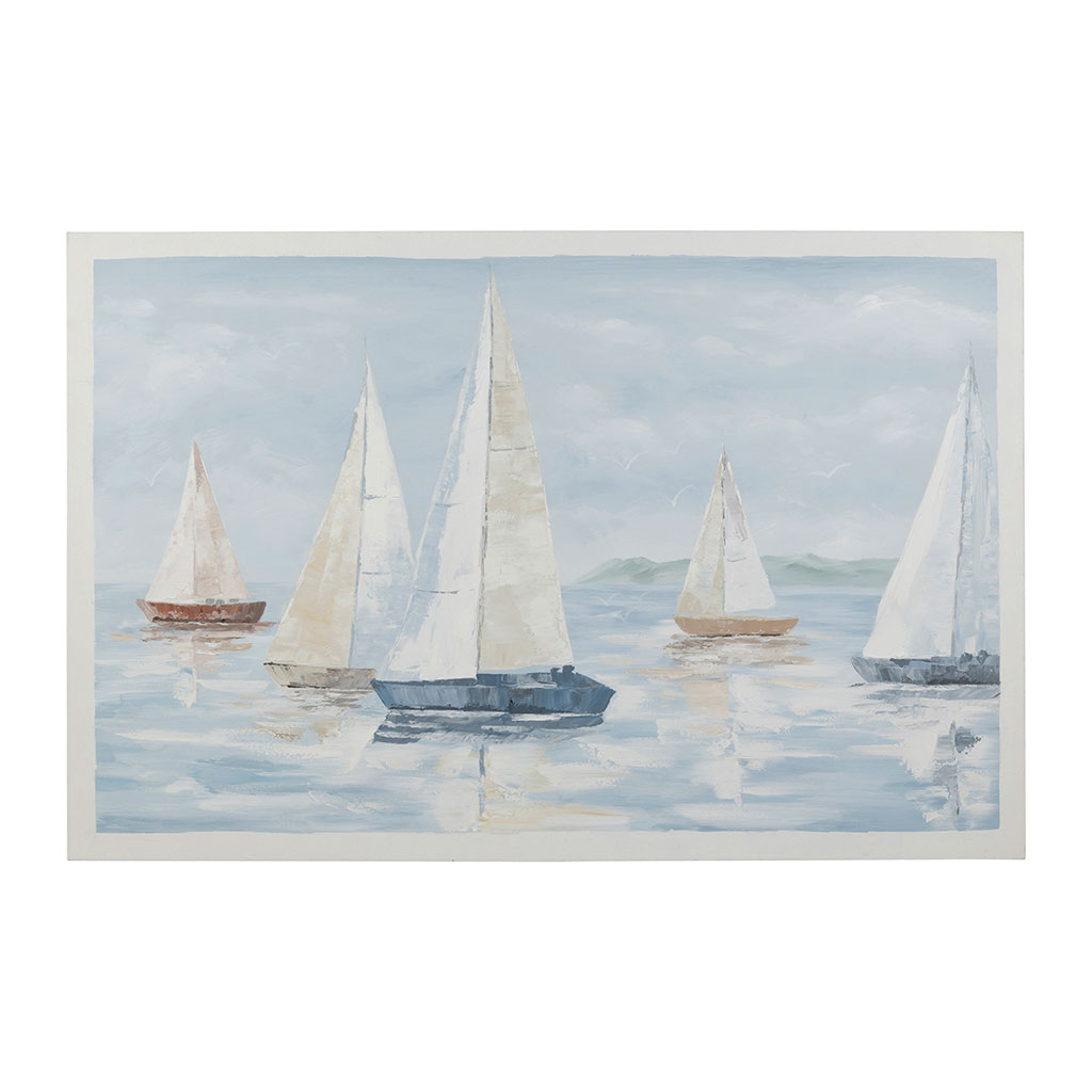 05 56 69 68 67-contact@fabriquedestyles.frPeinture sur toile bleu et beige 120x80cm - Voilier