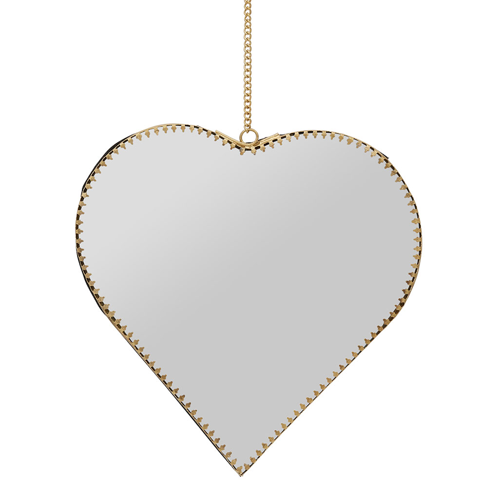 Découvrez notre miroir en forme de cœur en laiton de dimensions 20x21cm.