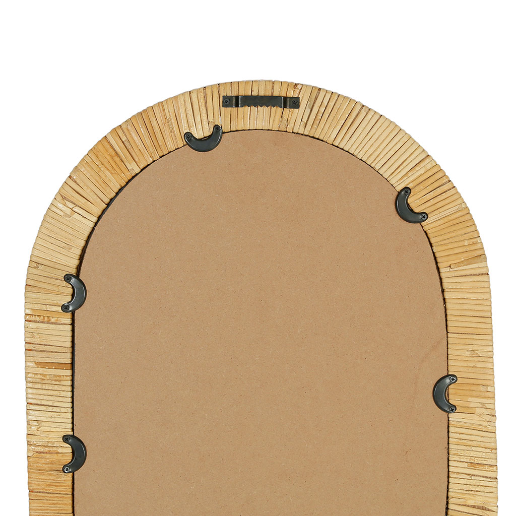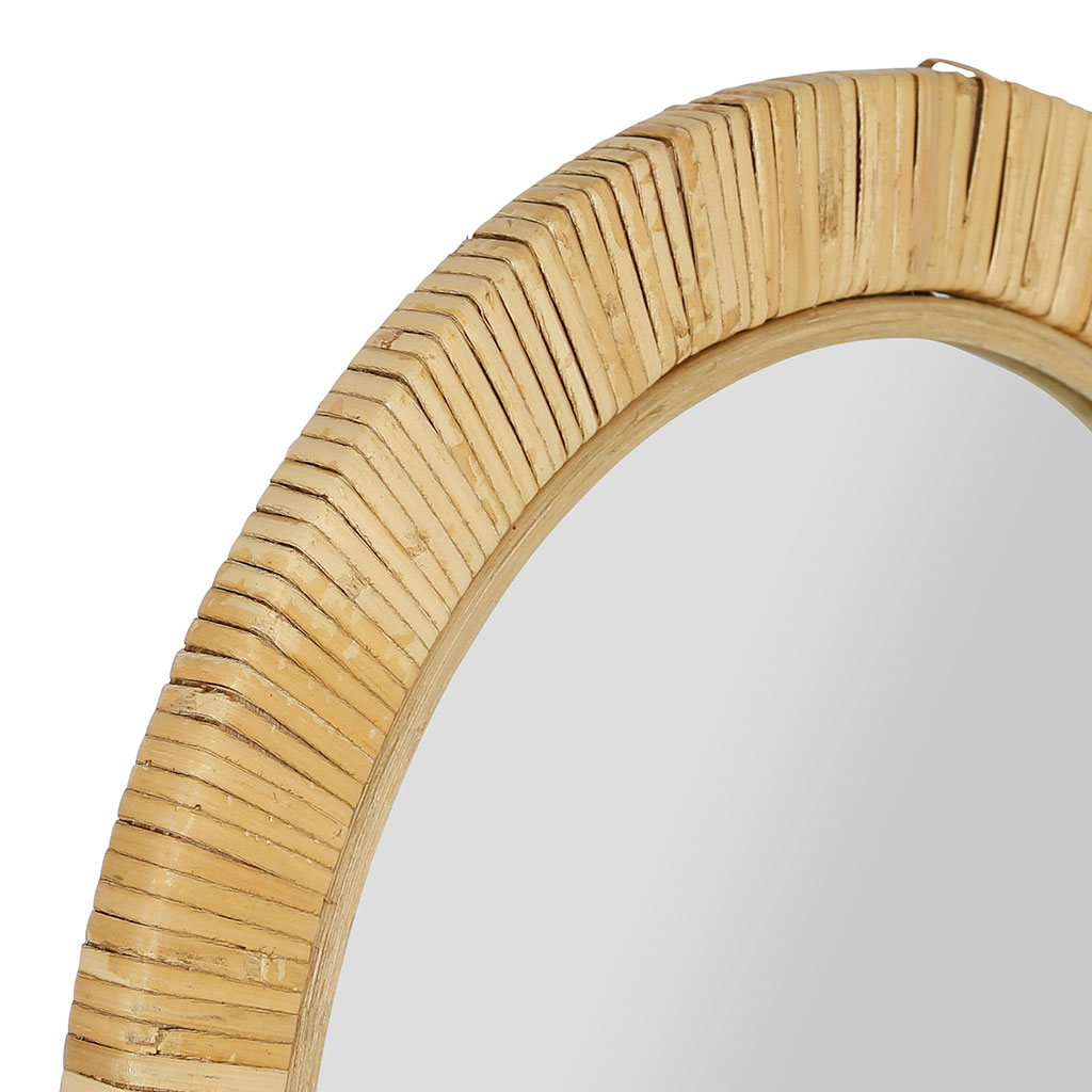 Découvrez le magnifique miroir Tulum en rotin et en MDF naturel de dimensions 40x55cm.