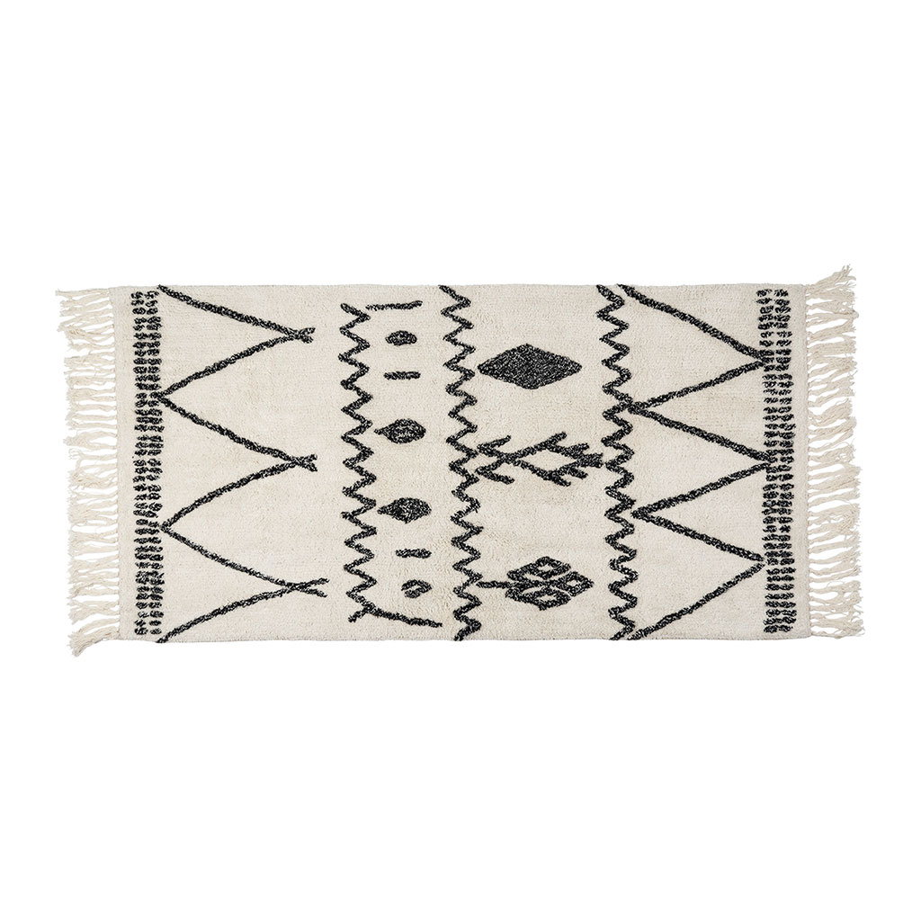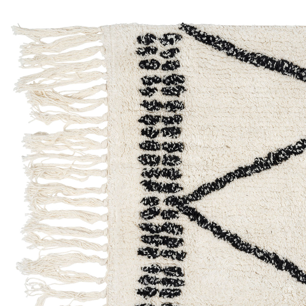 05 56 69 68 67-contact@fabriquedestyles.frTapis en coton tufté écru et noir 140x70cm - Vencia