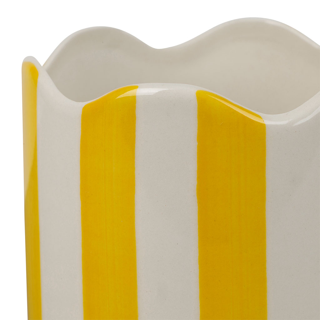 Le cache-pot Artist apporte une note de fraîcheur immédiate grâce à ses rayures verticales jaune soleil sur fond blanc.