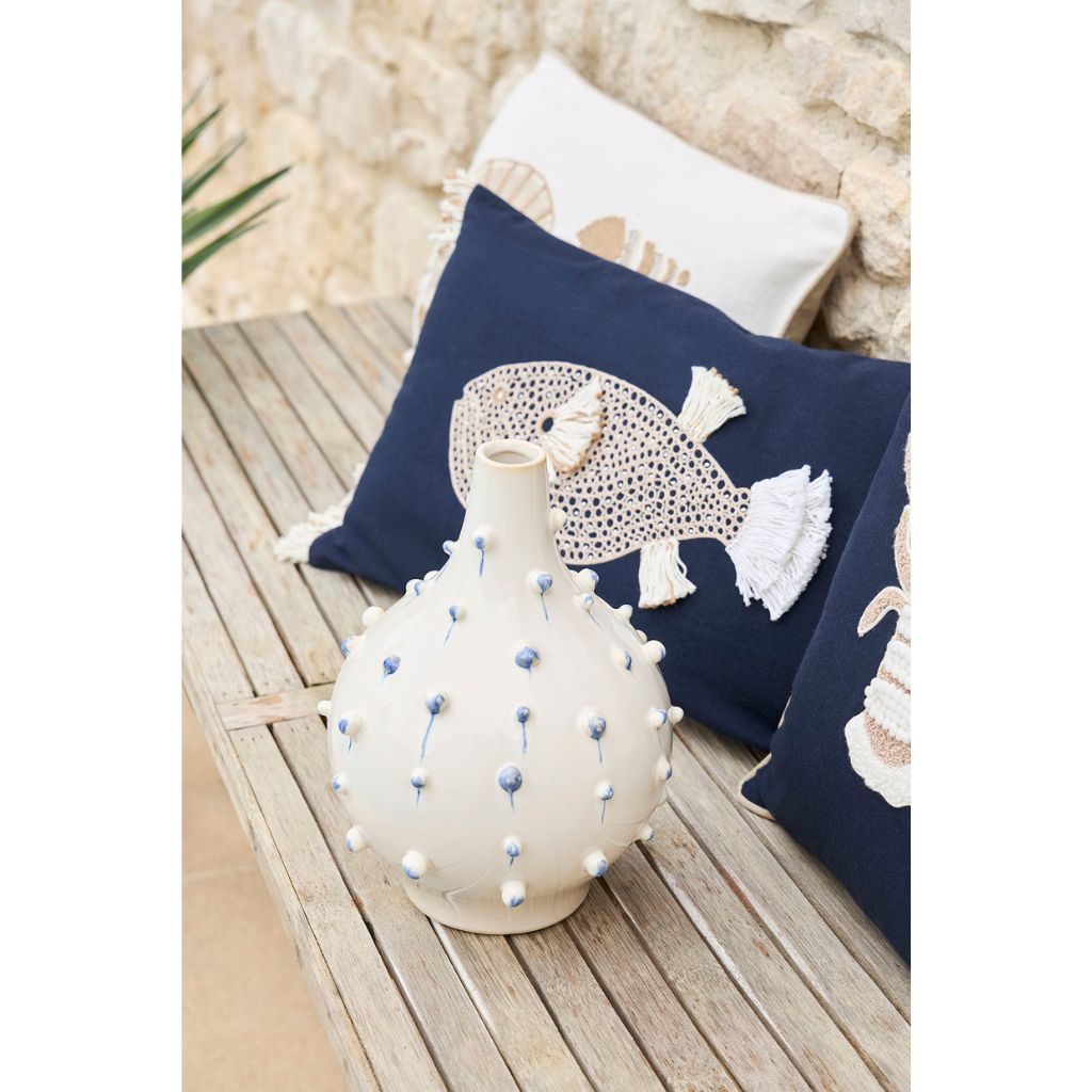 05 56 69 68 67-contact@fabriquedestyles.frVase dame jeanne en grès blanc et bleu h25cm - Delicio
