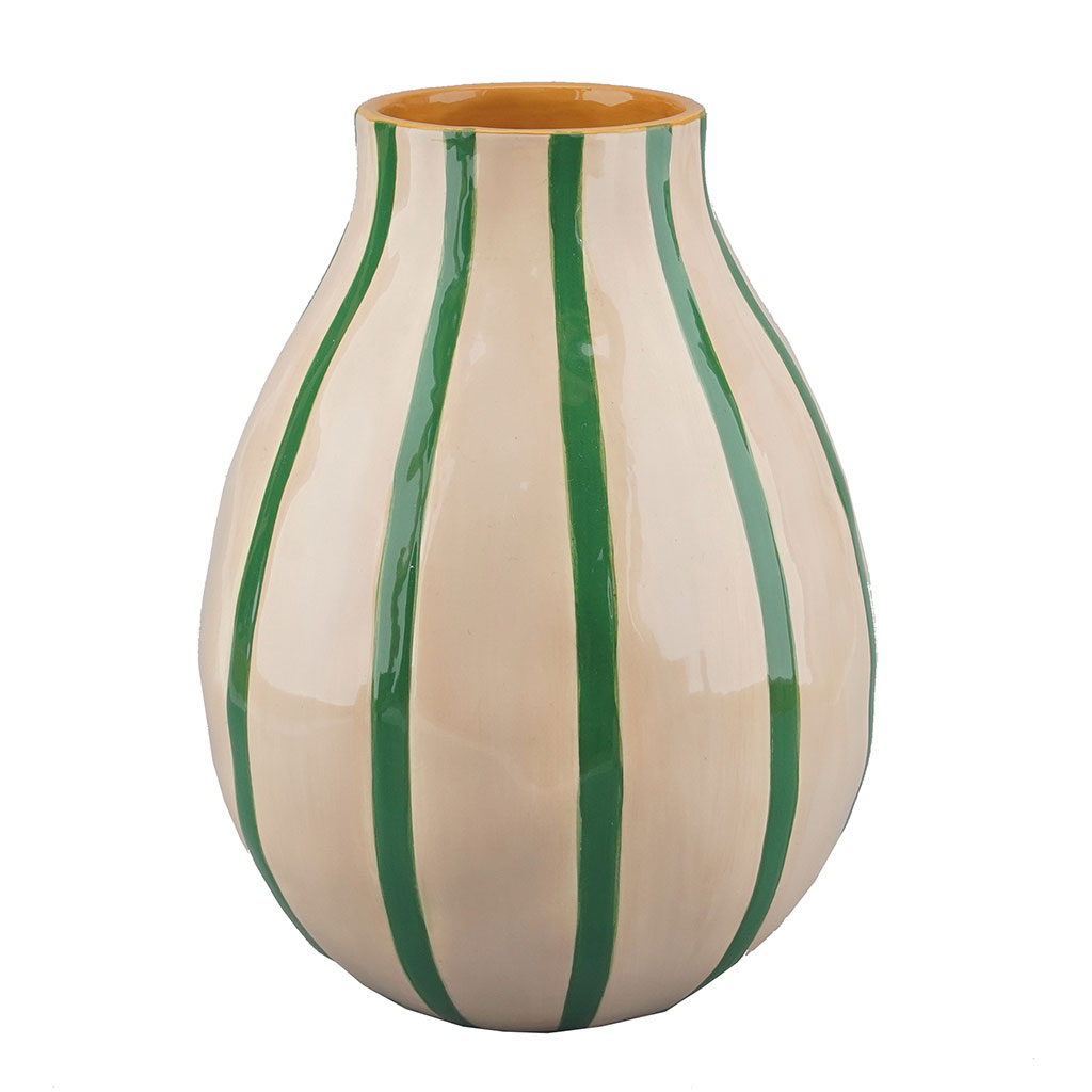 05 56 69 68 67-contact@fabriquedestyles.frVase en dolomite rayé vert écru et jaune h20cm