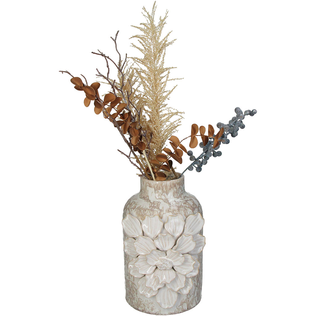 Sa teinte blanche nuancée permet de l'intégrer facilement dans un univers Minimaliste ou Scandinave, où il valorisera des fleurs séchées ou quelques branches d'eucalyptus.