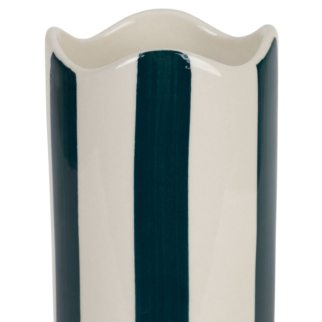 Fabriqué en grès, ce vase se distingue par sa couleur émeraude captivante et sa texture attrayante.