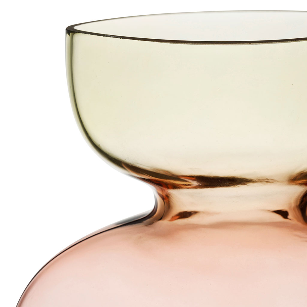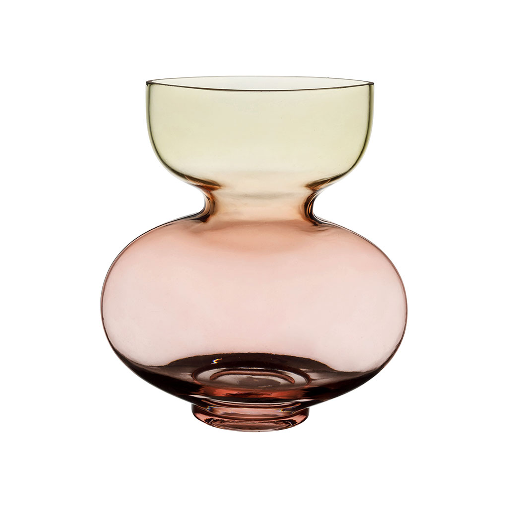 Ajoutez une touche de couleur et de fantaisie à votre intérieur avec ce vase en verre teinté de nuances jaune et rose.