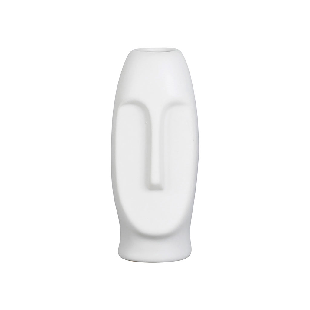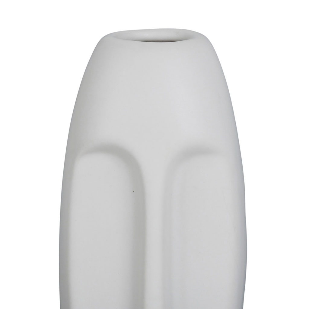 Le vase Face Blanc en grès mesure 6x5.5xh13.5cm et apporte une touche d'élégance à votre intérieur avec son design unique.