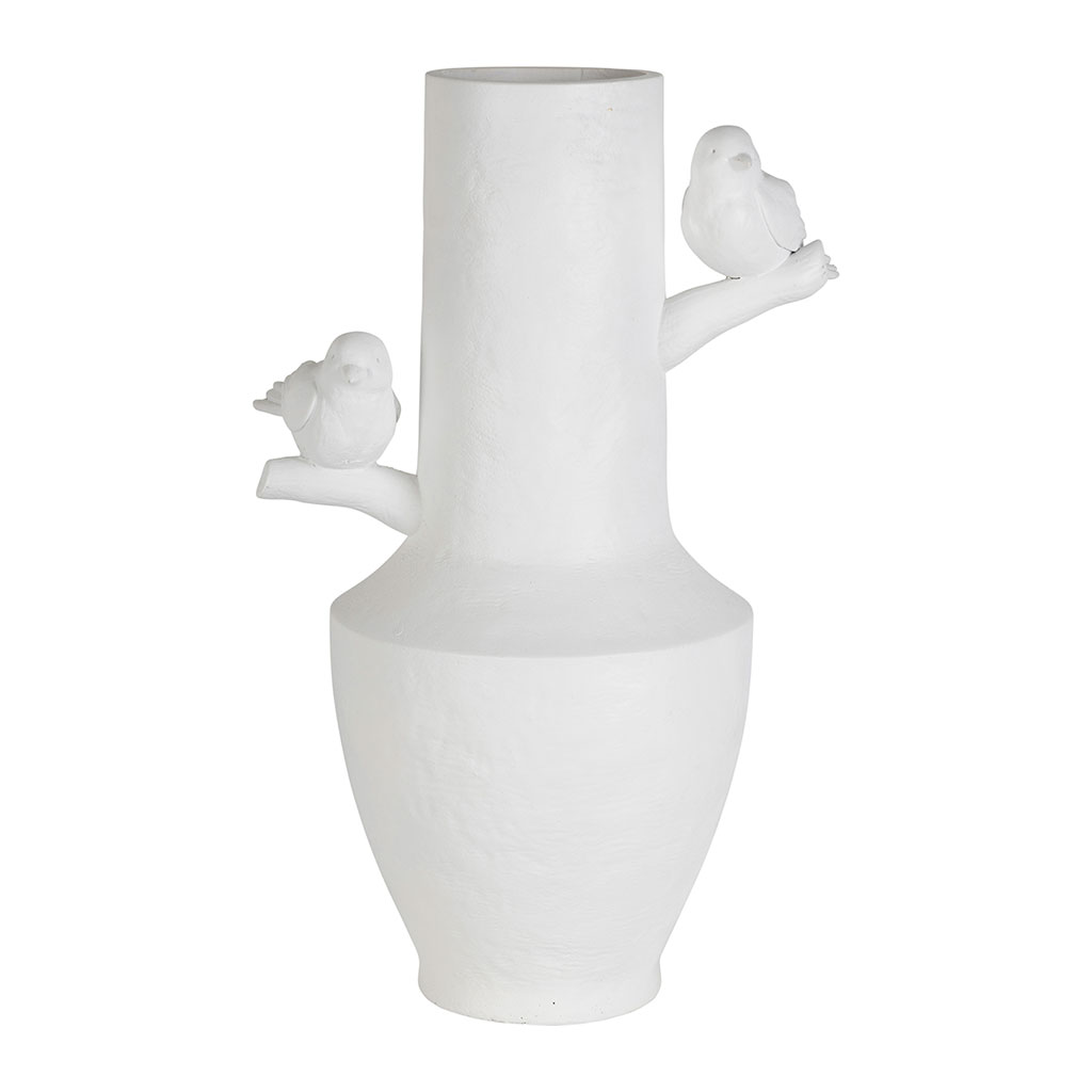 Découvrez le vase moineau en résine blanche, d'une hauteur de 35,5 cm, véritable bijou pour sublimer votre intérieur.