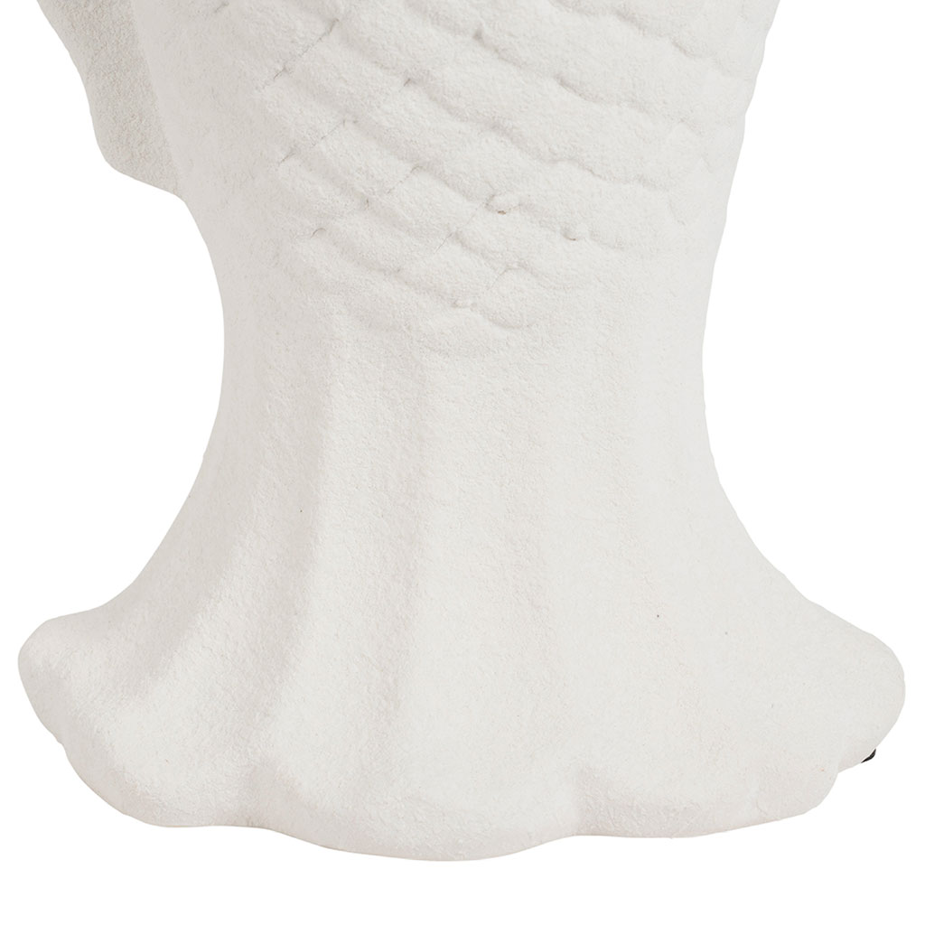 Ce vase en forme de poisson, entièrement réalisé en grès blanc, attire l’œil par son design sculptural et sa finition texturée.