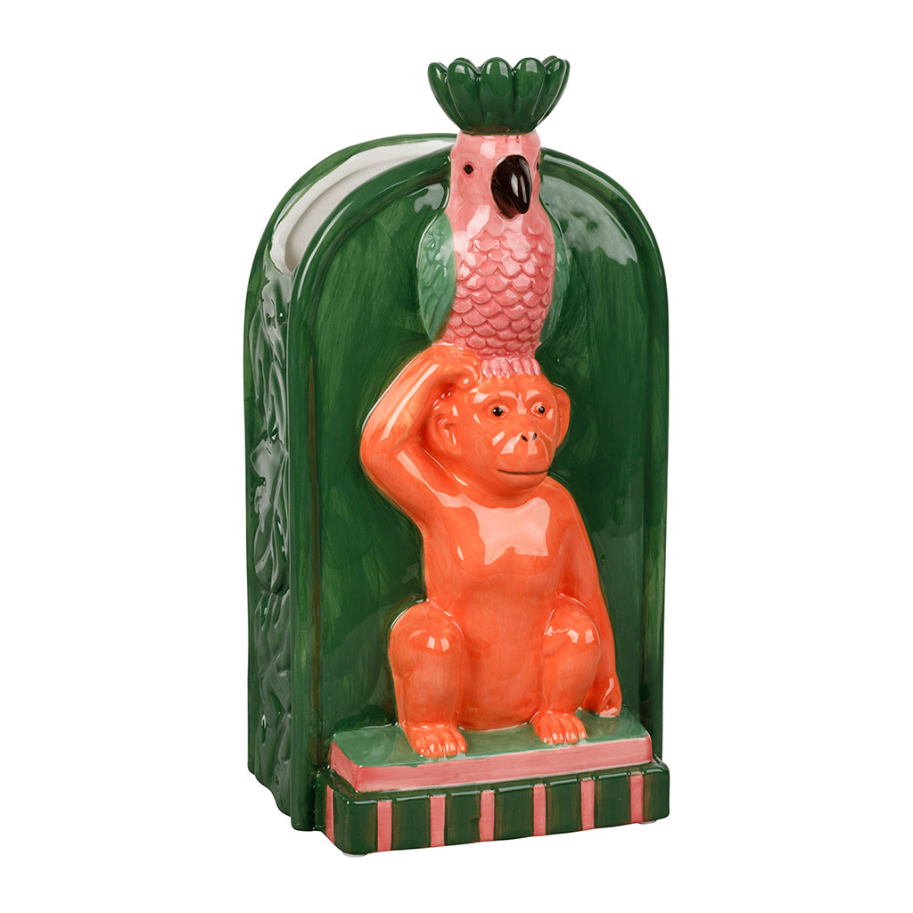 05 56 69 68 67-contact@fabriquedestyles.frVase singe en dolomite vert et rose h24cm - Jungle pop