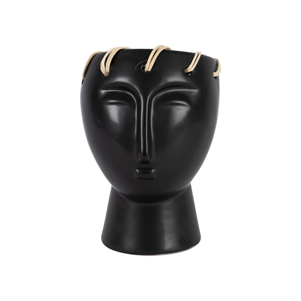Découvrez le Vase visage en dolomite noir h14cm - Visage-Arty, un véritable bijou décoratif pour votre intérieur.