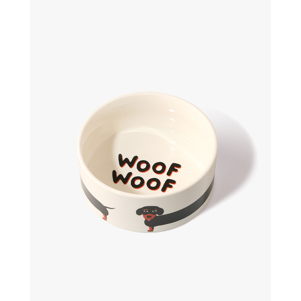 Cette gamelle en céramique arbore une silhouette de teckel étirée, offrant un design ludique et horizontal pour votre animal de compagnie.