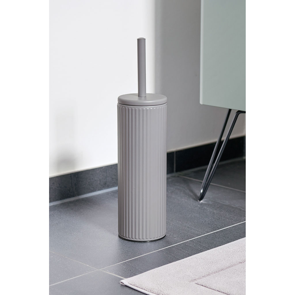 Moderne, sobre et fonctionnelle, la brosse WC grise séduit par son élégante texture nervurée et s'intègre parfaitement à tout décor de salle de bains.