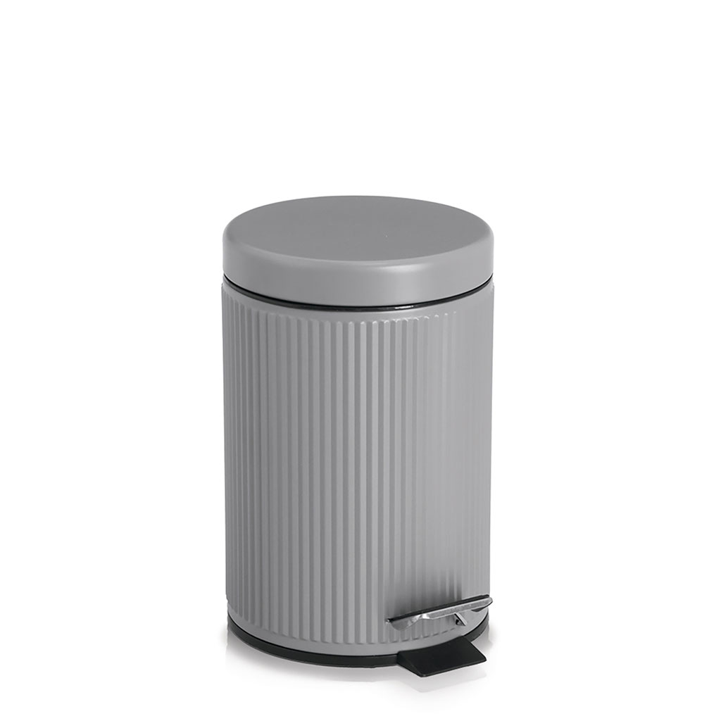 Intemporelle, pratique et élégante, cette poubelle à cosmétiques grise s'intègre parfaitement à toute salle de bains et séduit par sa texture nervurée moderne.