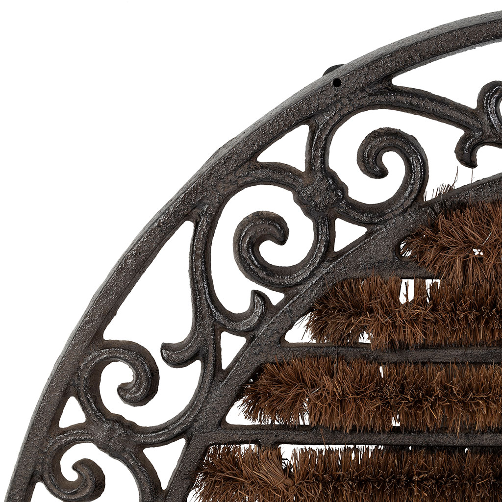 Découvrez ce paillasson mêlant fonte robuste et fibre de palmier naturelle, pensé pour apporter une touche unique à votre entrée.