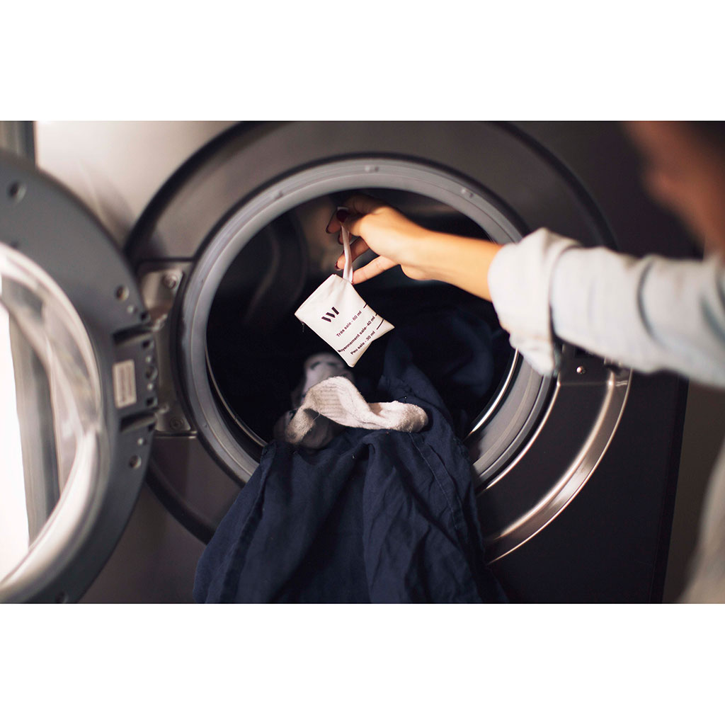 Grâce au pochon doseur livré avec le flacon, lancer des lessives devient un jeu d'enfants