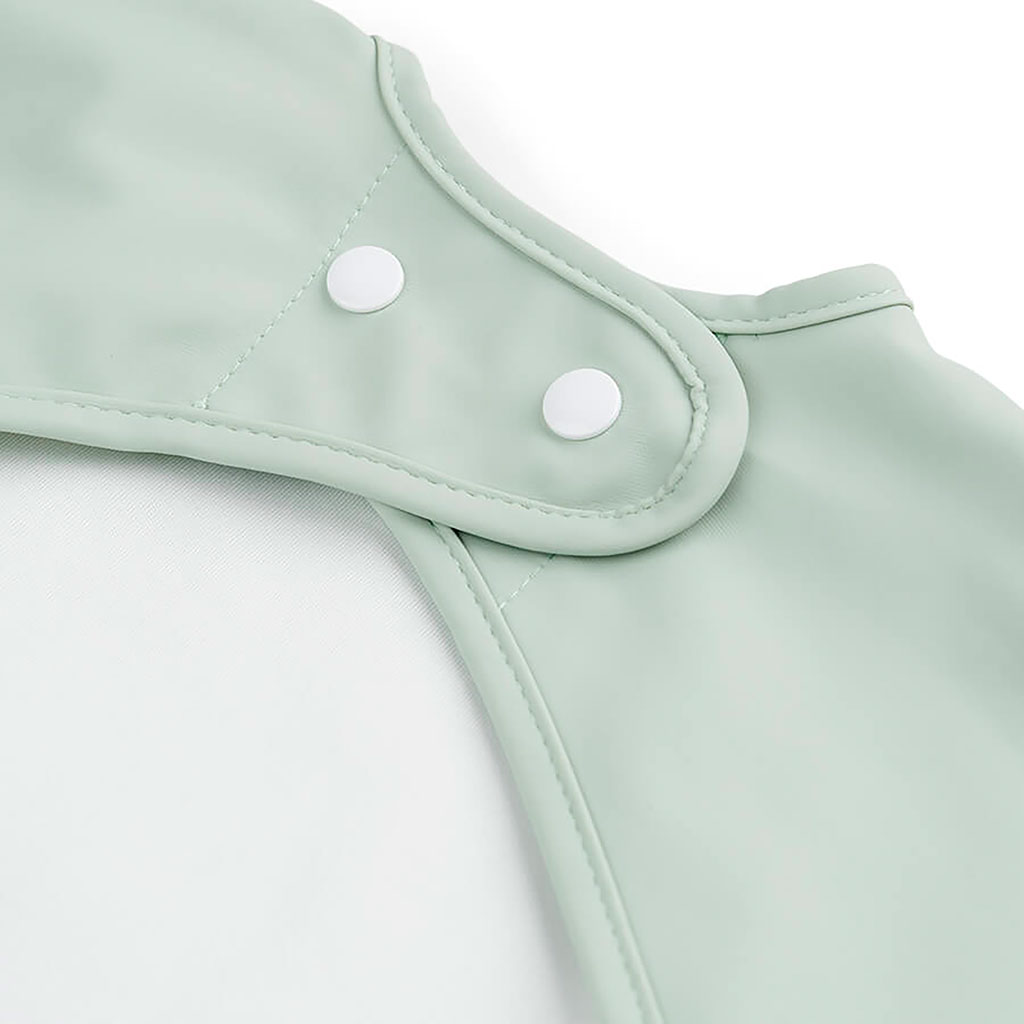 Ce bavoir doux, imperméable et dôté d'élastiques autour des poignets empêchera Bébé de se mouiller.