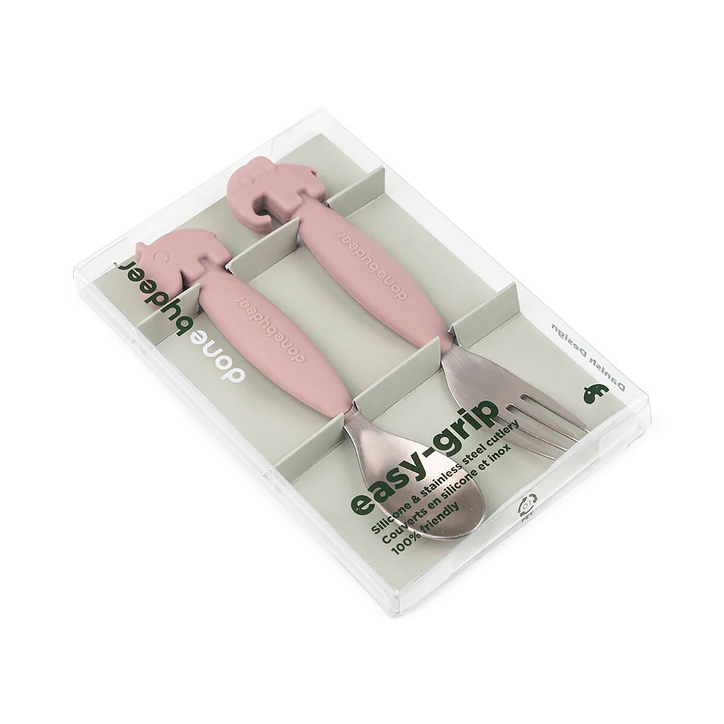05 56 69 68 67-contact@fabriquedestyles.frCuillère et fourchette easy-grip en silicone rose - Deer Friends