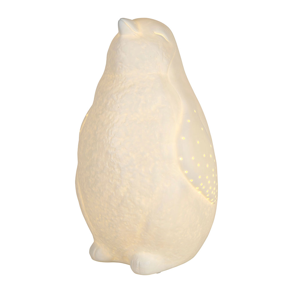 Découvrez notre adorable luminaire en porcelaine blanche en forme de pingouin, un ajout charmant pour égayer la chambre de votre enfant.