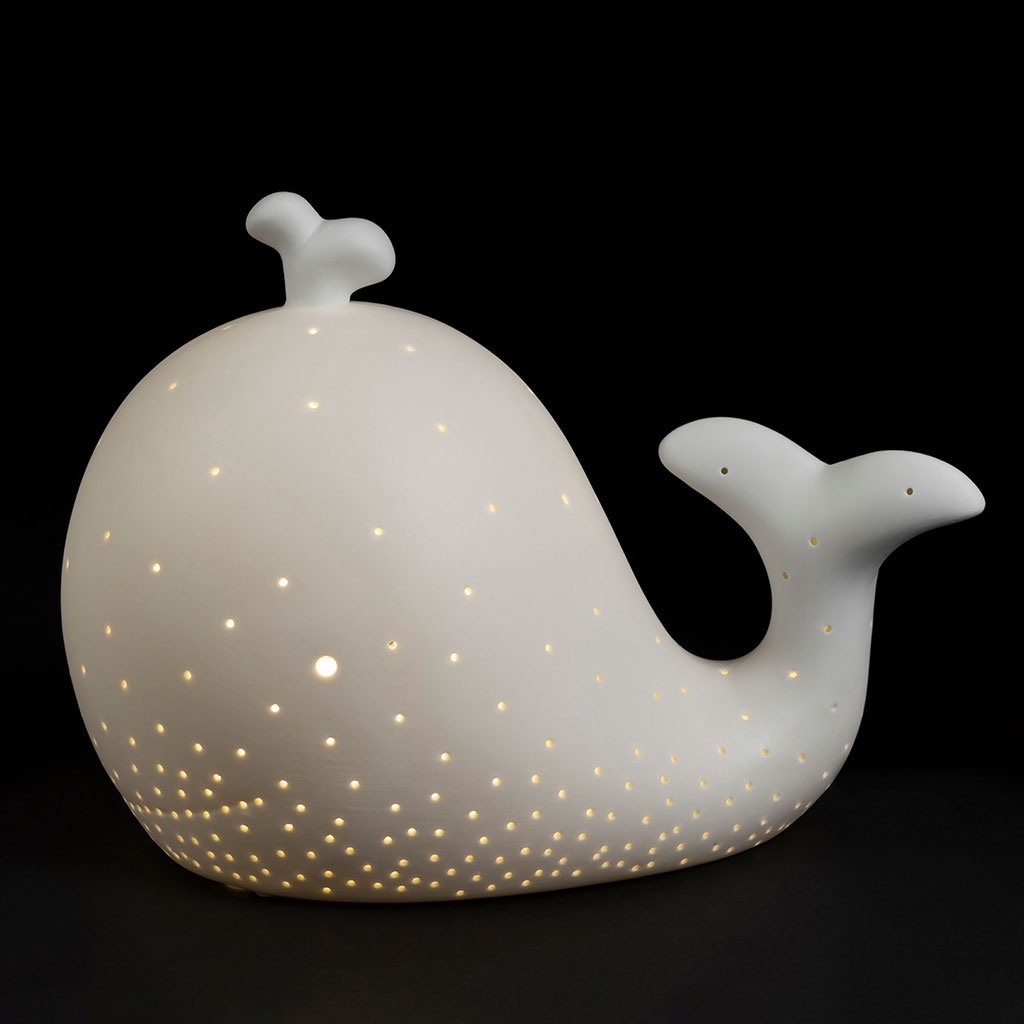 Découvrez la lampe LED en porcelaine en forme de baleine, une pièce incontournable pour la chambre de vos petits explorateurs.