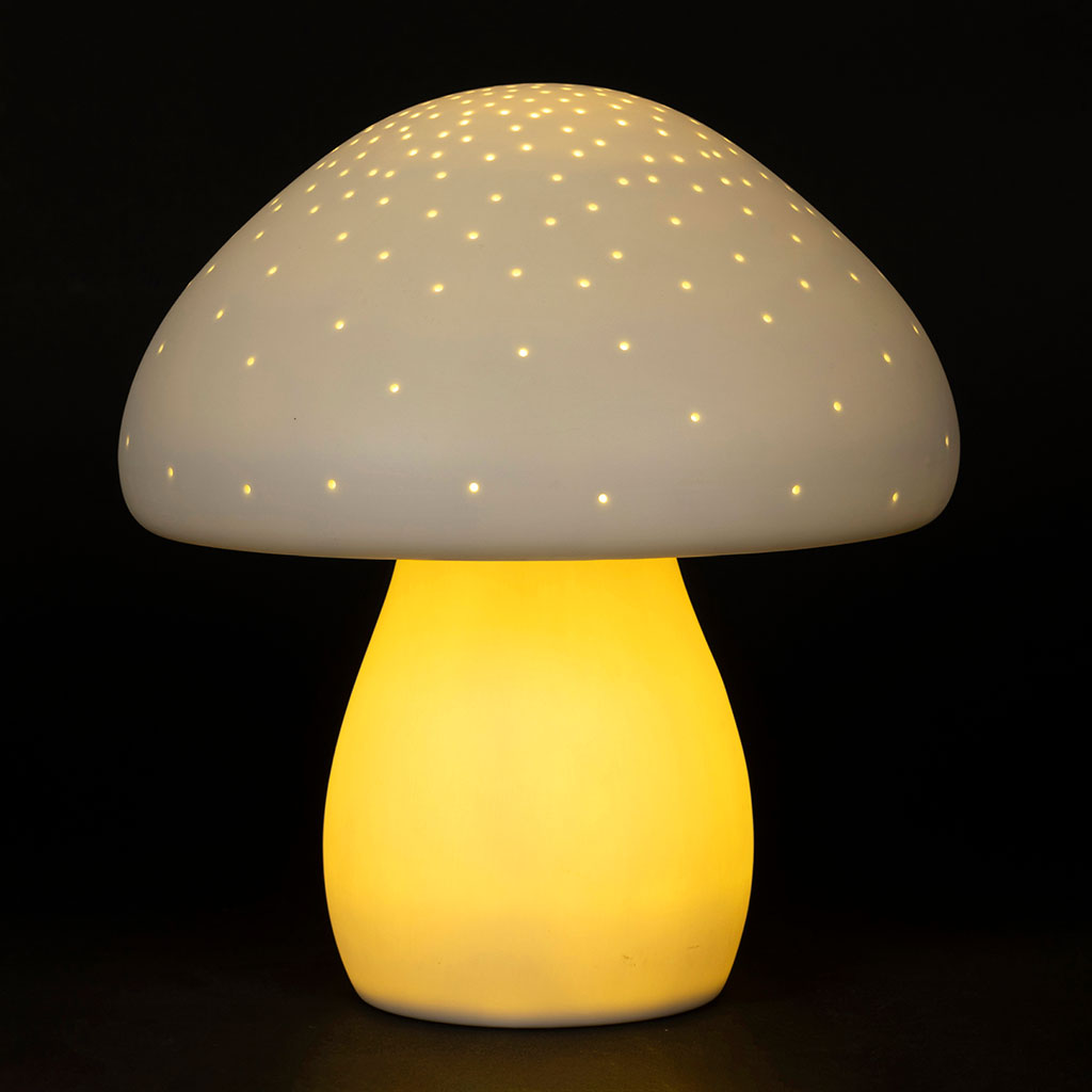 Découvrez la Lampe led champignon en porcelaine blanc h22cm - Champignon du Coin des petits, un véritable bijou pour votre intérieur.