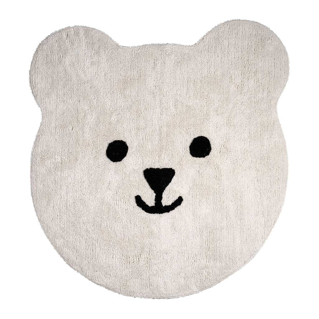 Confectionné en coton doux, ce tapis blanc est délicatement rehaussé de broderies noires représentant un adorable motif d'ours.