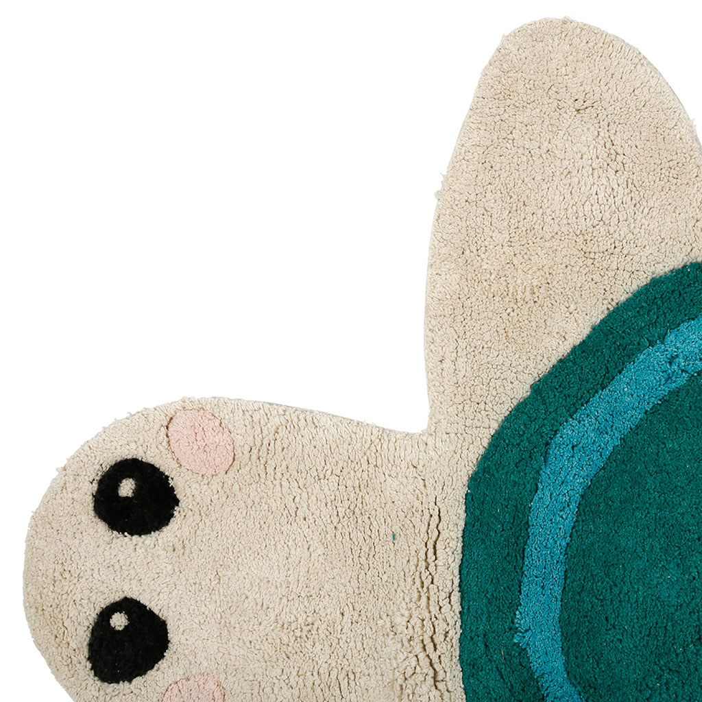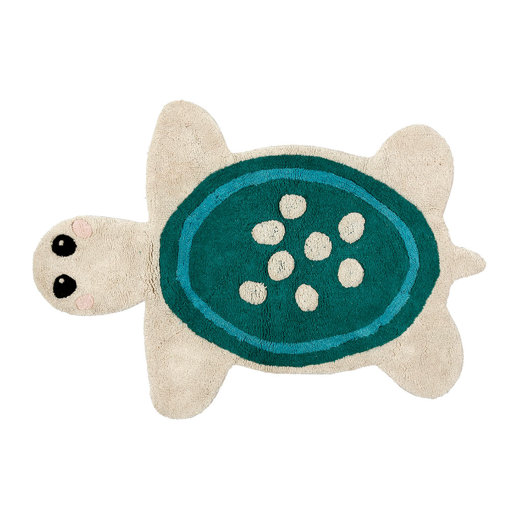 Ajoutez une touche de magie marine à la chambre de votre enfant avec le tapis tortue en coton tufté écru et bleu.