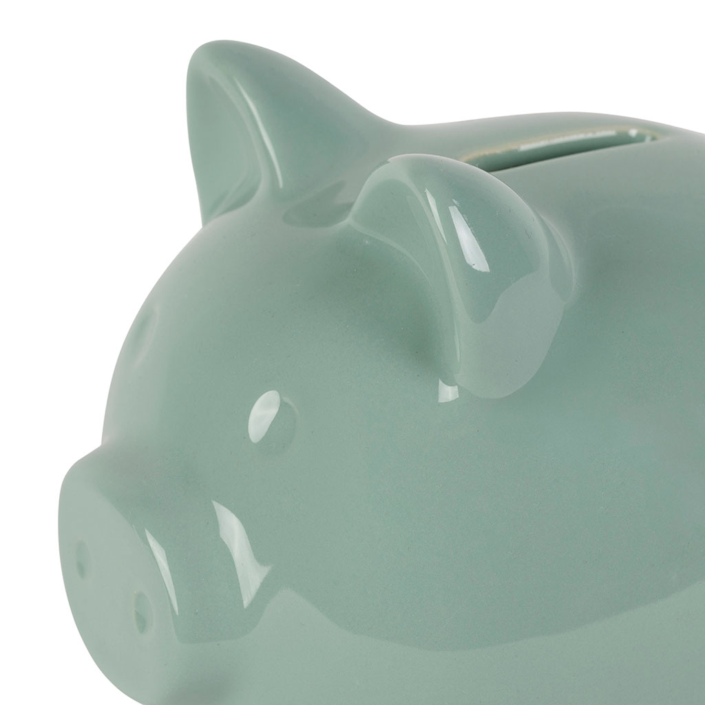 05 56 69 68 67-contact@fabriquedestyles.frTirelire cochon en grès sauge h11cm