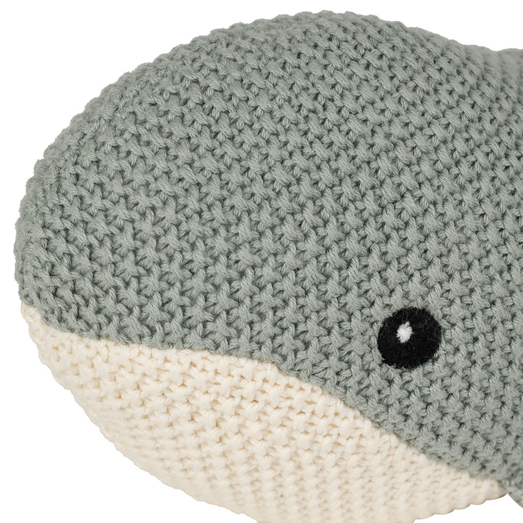 Découvrez la peluche baleine en coton sauge, l'alliée idéale pour accompagner votre enfant dans ses moments de jeu et de détente.