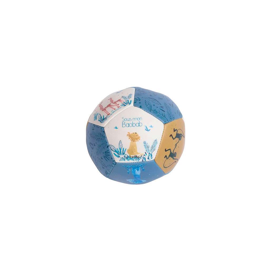 Avec ses illustrations tendres et colorées inspirées de la savane, ce petit ballon souple invite les tout-petits à l’aventure.