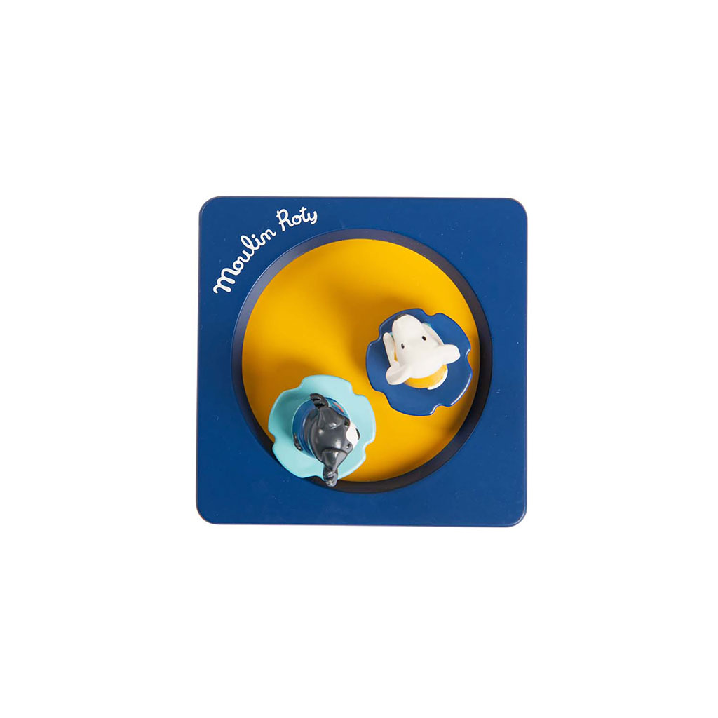 Cette boîte à musique bleue de la collection Puce et Pilou berce les tout-petits avec tendresse.