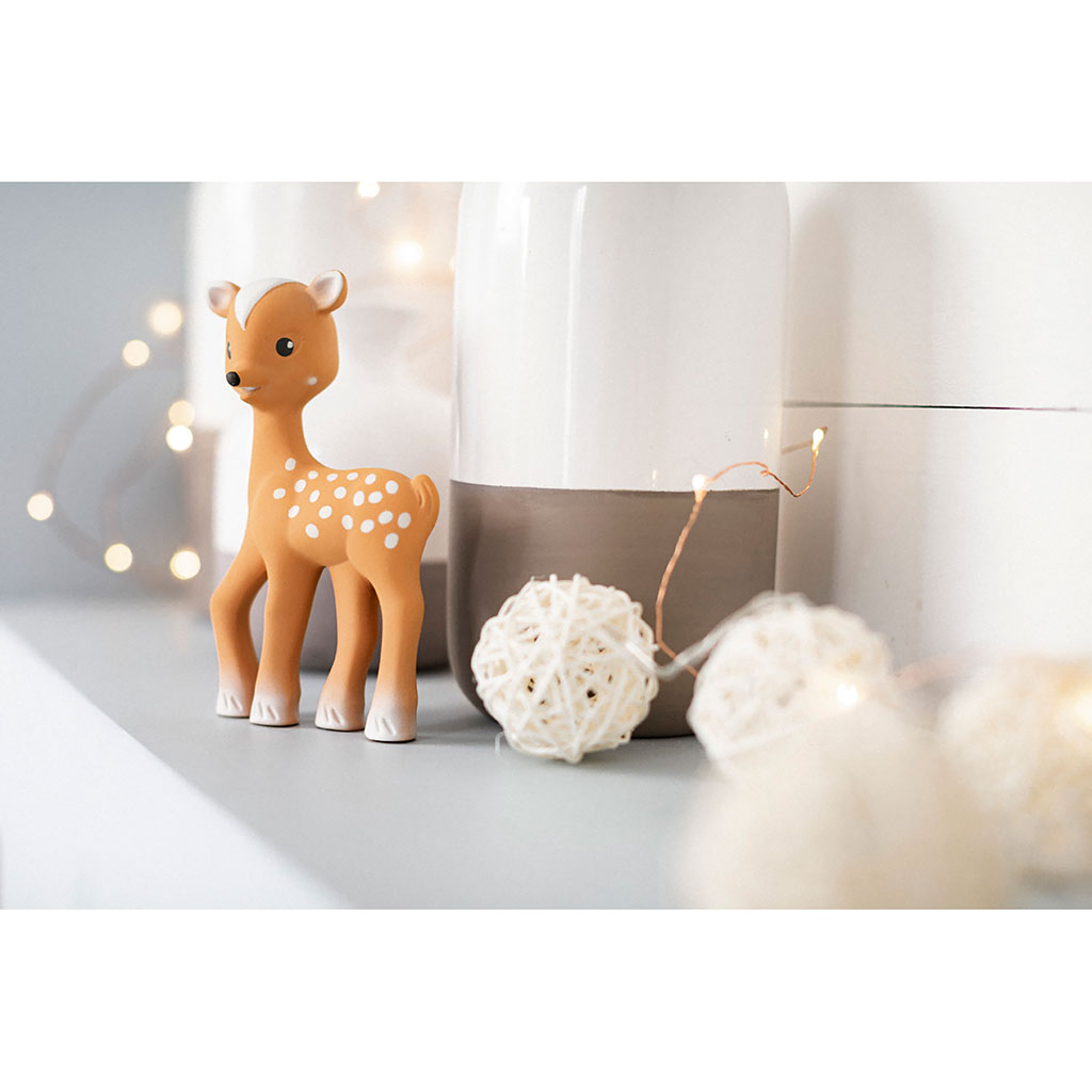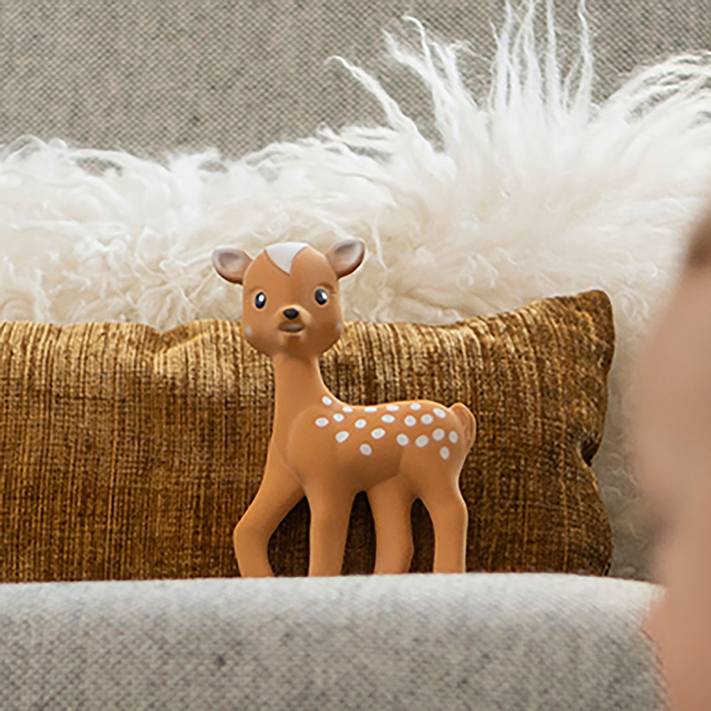 Composé de caoutchouc 100% naturel, Fanfan le faon est un jouet pour bébé qui offre une stimulation sensorielle complète.