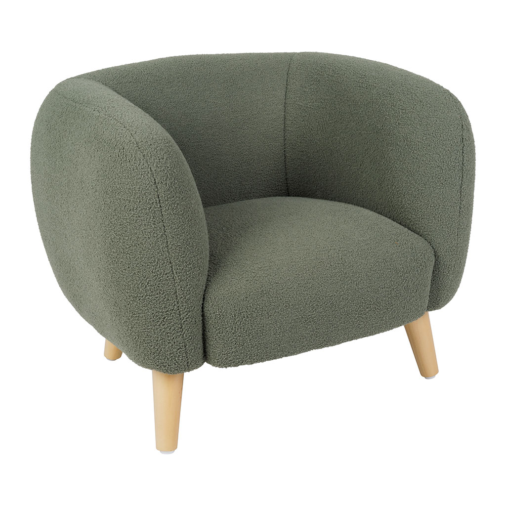 Faites du coin des enfants un lieu convivial et chaleureux avec ce fauteuil en tissu bouclette sauge, un choix qui allie fonctionnalité et plaisir.