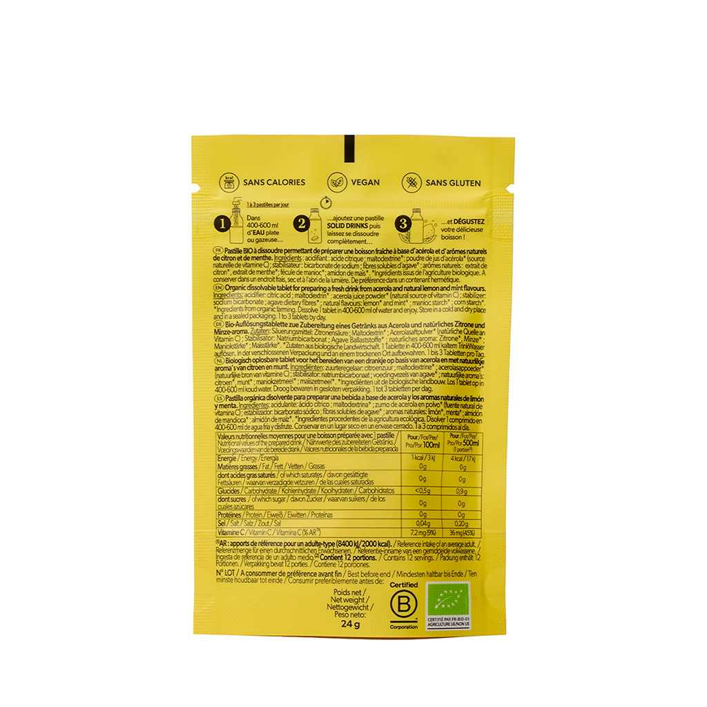 05 56 69 68 67-contact@fabriquedestyles.fr12 pastilles d'hydratation Solid drink citron vitamine C