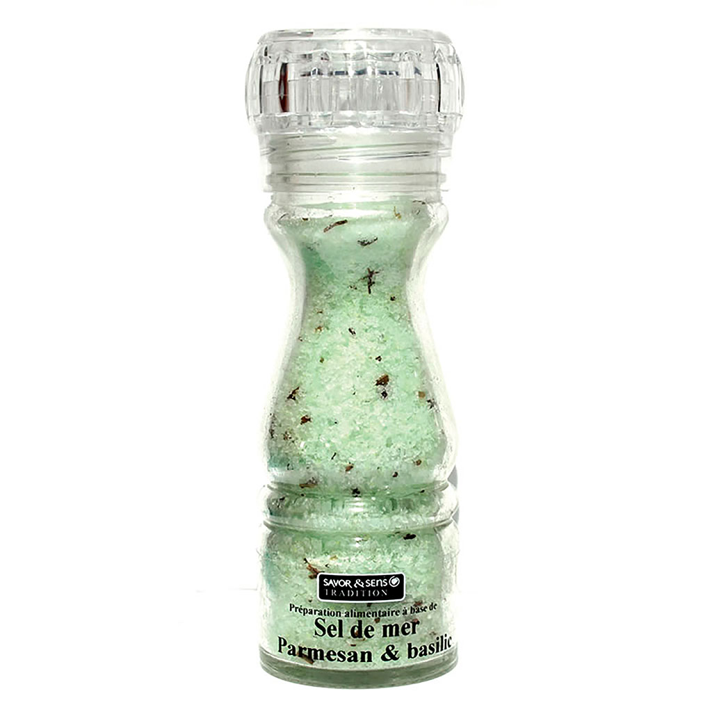 Découvrez une expérience culinaire unique avec notre incroyable mélange de sel de mer aux saveurs inédites de parmesan et de basilic.