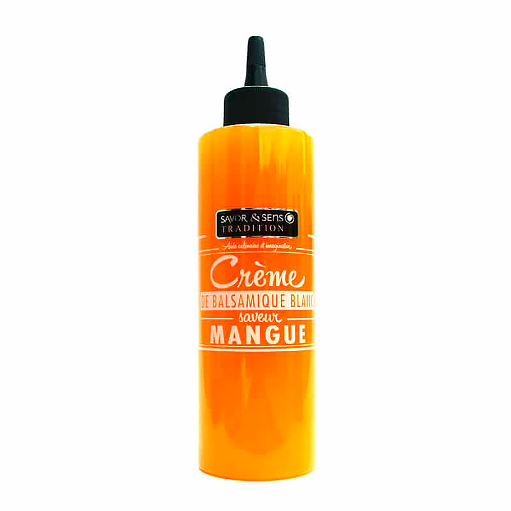Découvrez la crème de balsamique blanc à la mangue, un condiment irrésistible qui donnera une nouvelle dimension à vos créations culinaires.